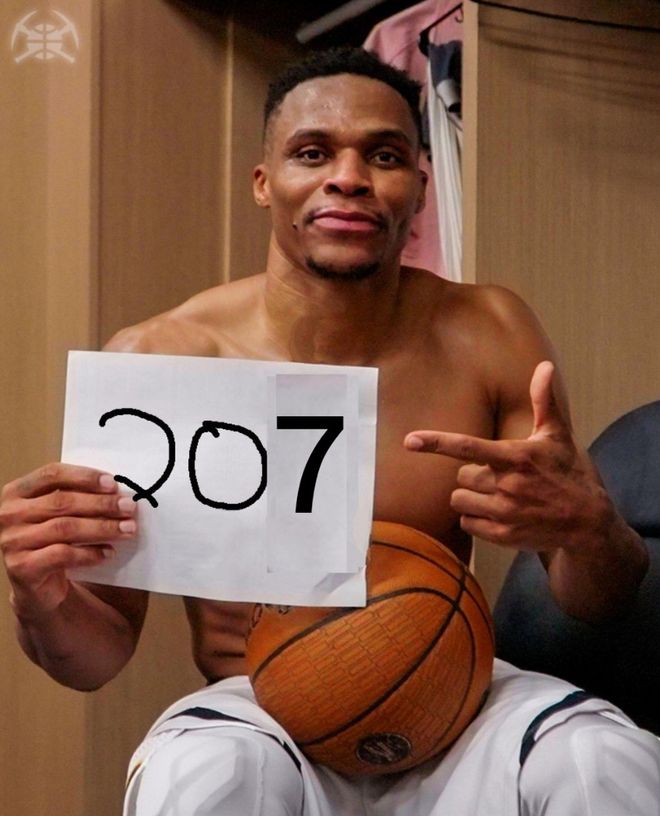 • 207次三双吞里程悲!底薪威少反超约基奇登顶 队记:感谢37岁老将